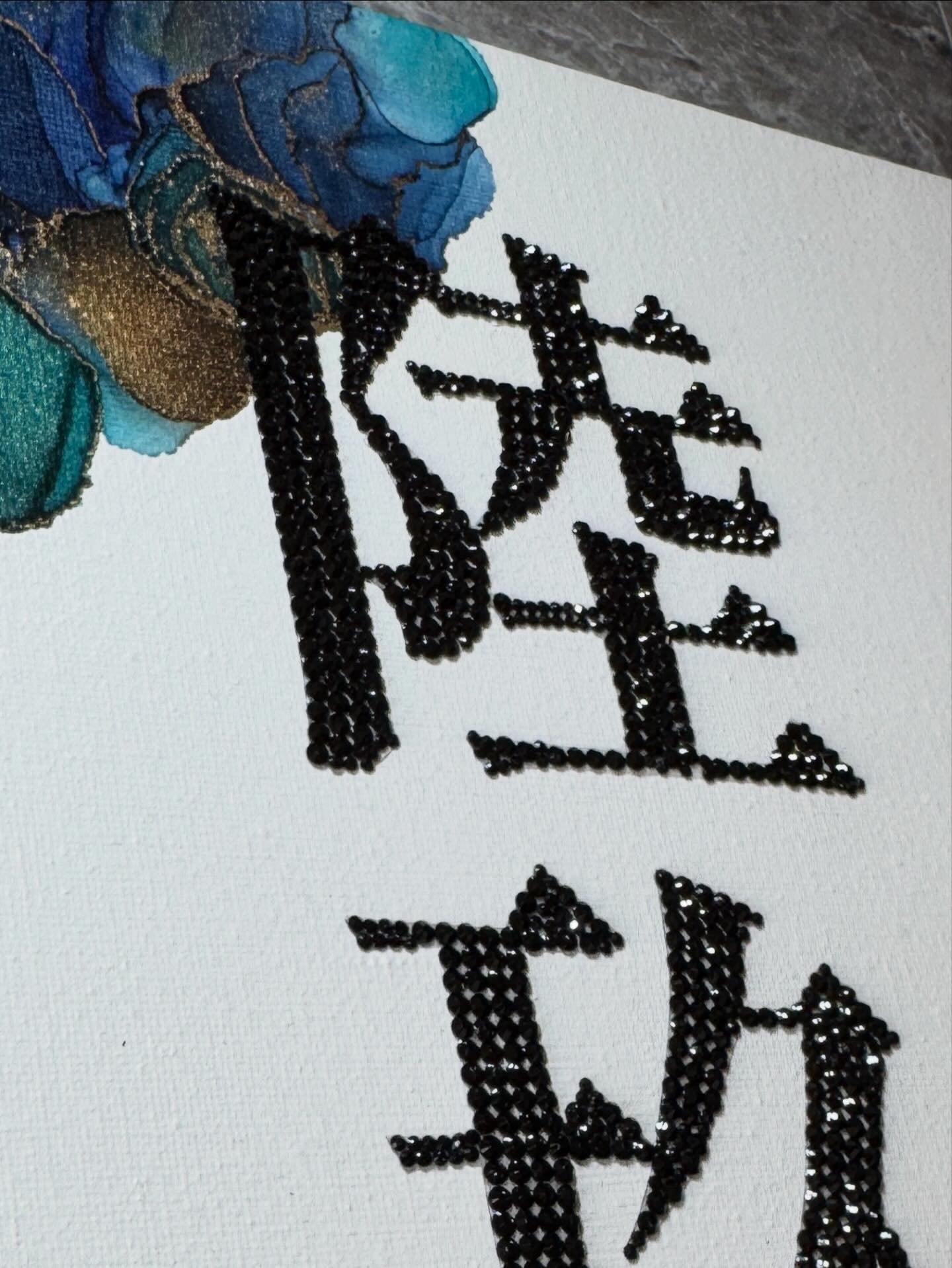 ● 素材: 木製張りキャンバス / アルコールインクアート / ラインストーン